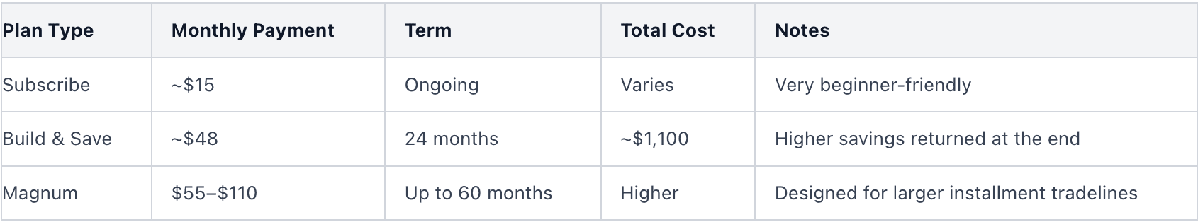 Some newer products offer cheaper or more flexible options, including subscription-based credit building.